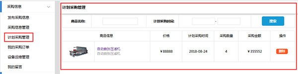 計劃采購作為平臺的一項創(chuàng)新采購服務(wù),可以通過選擇計劃采購的設(shè)備產(chǎn)品,采購商后臺可以查看到計劃采購清單,同時平臺會按照采購時間定期提醒,以求提醒采購商提前做好計劃采購任務(wù),以免遺漏和忘記。